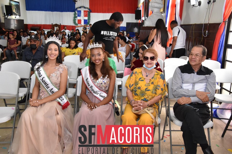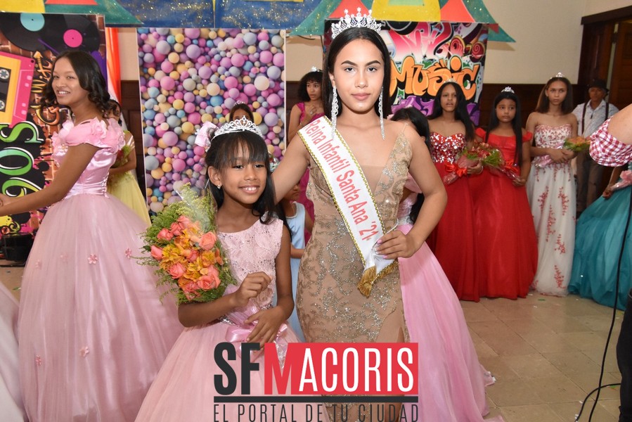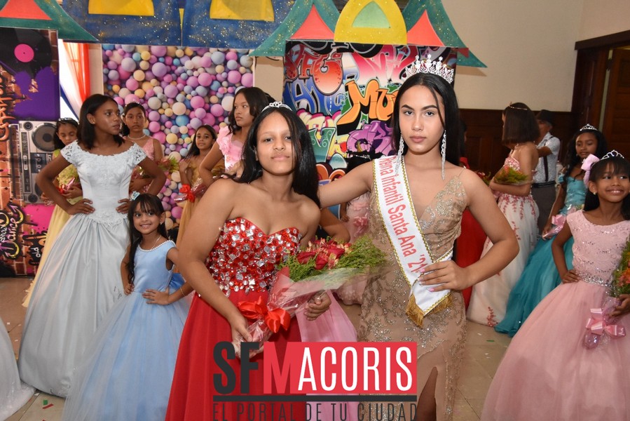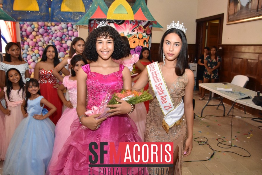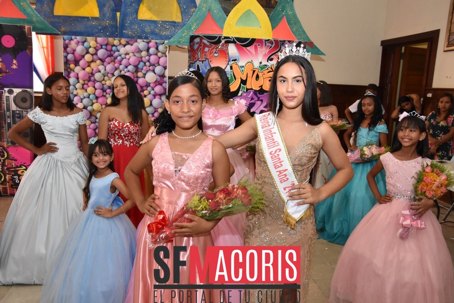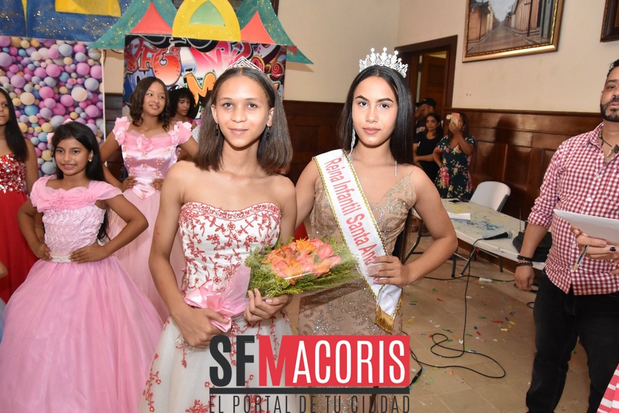Las niñas Adanshy Ovalle representante del sector El Ciruelillo y Miguelanny González, del Cercado resultaron electas como reina y virreina, respectivamente del certamen infantil Santa Ana 2022, en un hermoso espectáculo lleno de colorido, entusiasmo, cantos y baile , realizado la mañana del domingo 17 de julio, en el salón de Actos William García del Ayuntamiento Municipal.