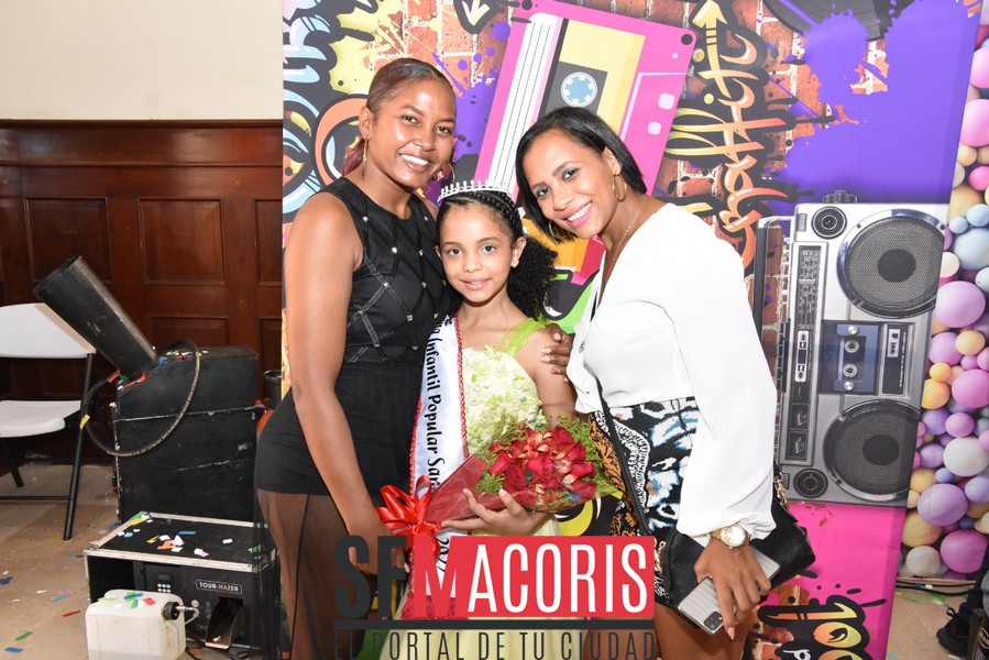 Mientras que las niñas Dashely Jerez de Loz Rieles, Dashely Javier, del sectorJobo Bonito y Marlyn Betances del ensanche Hermanas Mirabal, fueron seleccionados reina y virreina y princesa del reinado mini infantil, respectivamente.