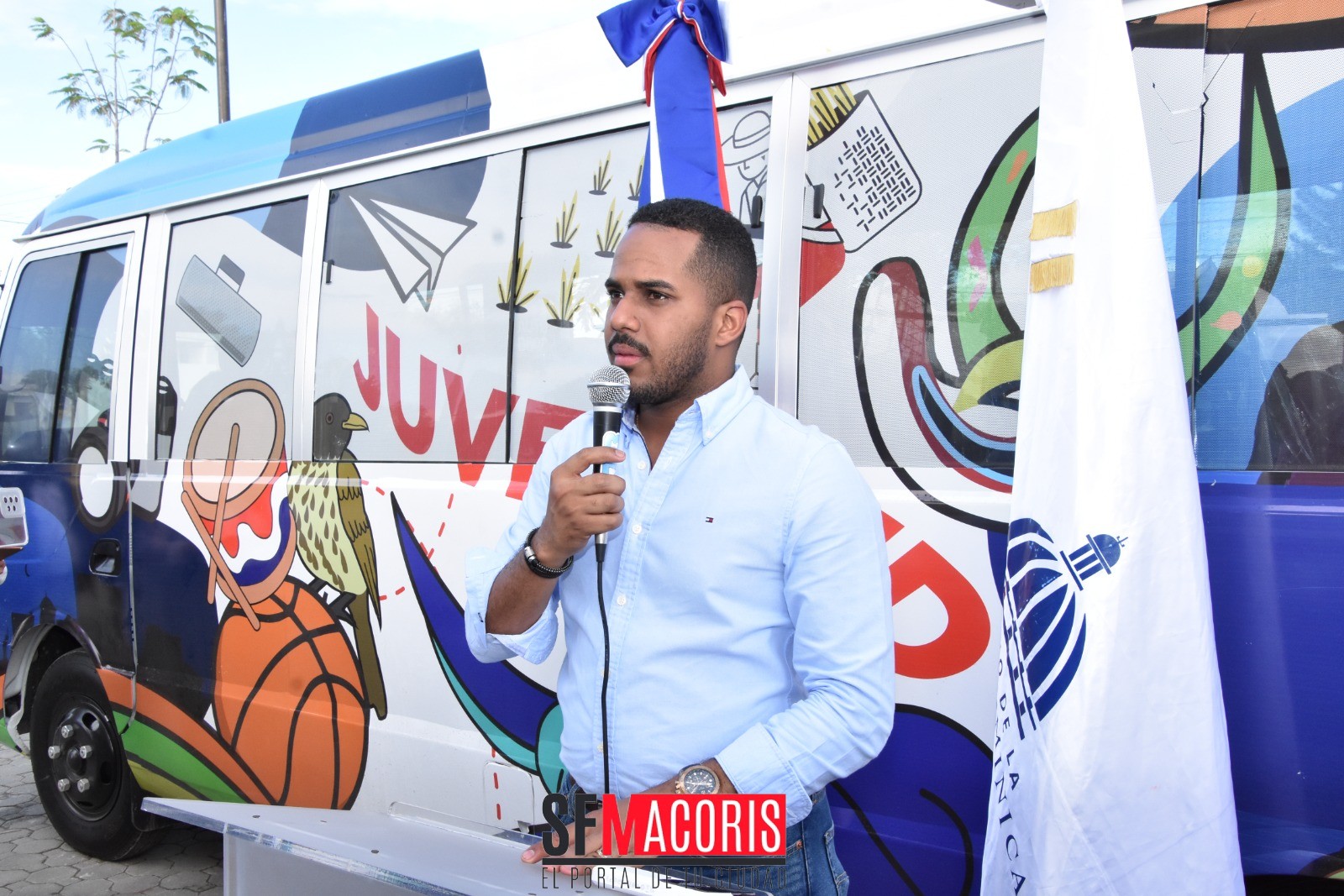 El autobús fue entregado vía el ministerio de la juventud, que dirige Rafael J. Féliz García, quien resalto la visión del presidente de apoyar la juventud dominicana.
