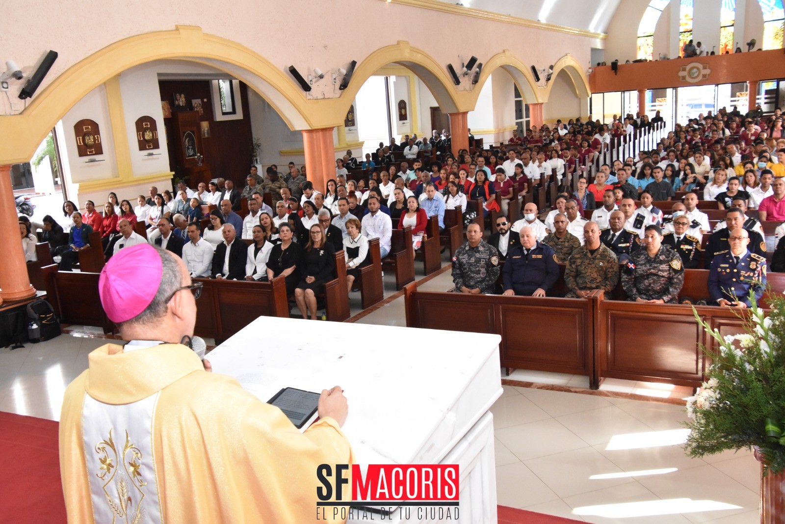 Tras finalizar los actos en el parque Duarte, a las 8:30 de la se celebró la eucaristía en la catedral Santa Ana, oficiado por el obispo de la Diócesis de San Francisco de Macorís, Alfredo de la Cruz Baldera.